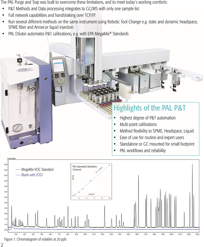 퍼지 및 트랩 (P & T)은 미량 수준의 휘발성 화합물 분석을 위해 1974 년부터 잘 정립되어 있습니다.